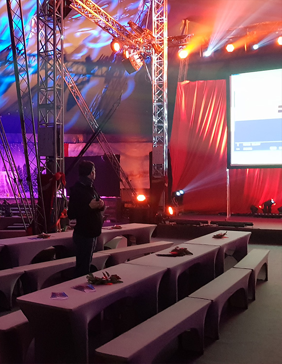 Technikpaket mit großer Beschallungsanlage, Mikro & XXL-Flatscreen